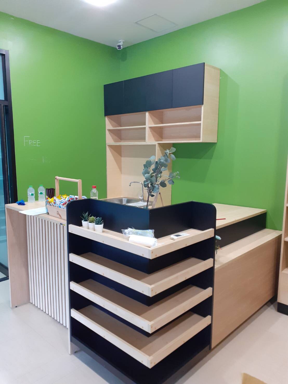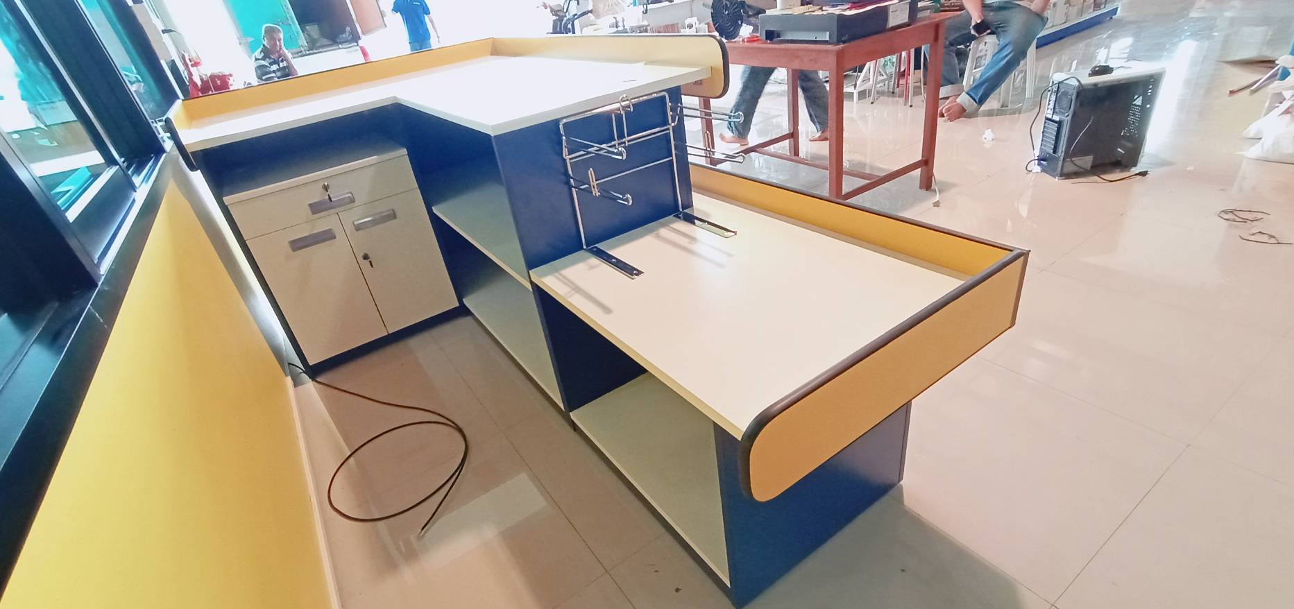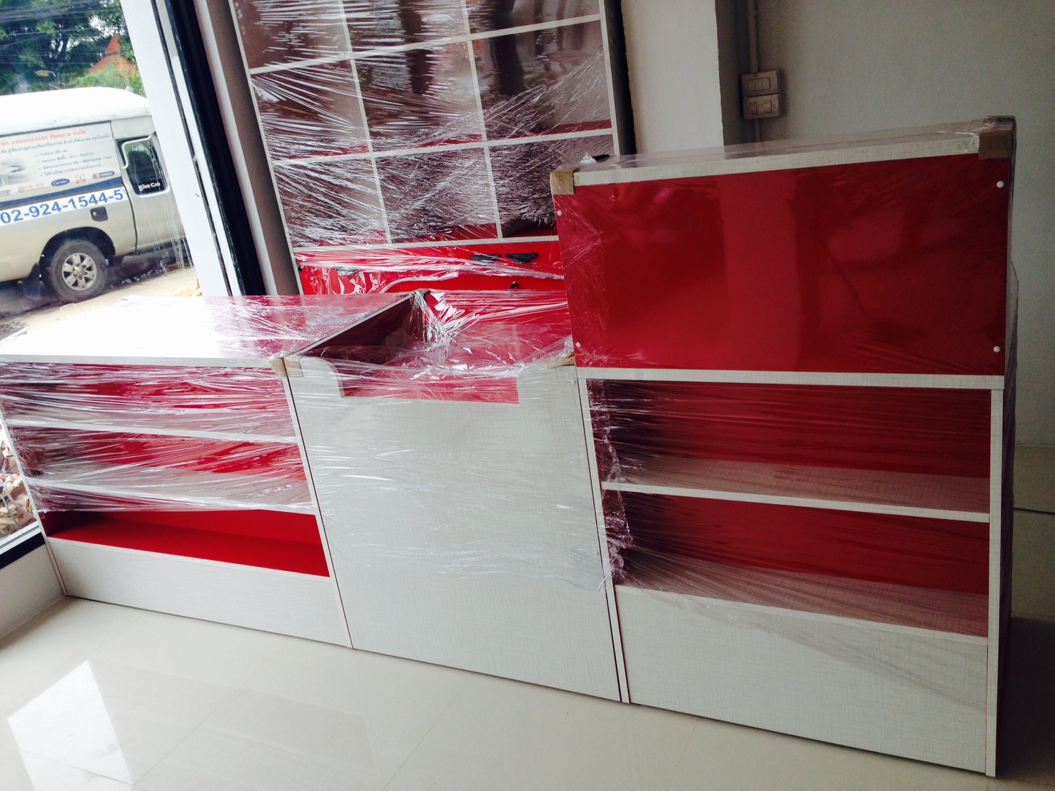 เคาน์เตอร์แคชเชียร์คิดเงินเป็น แบบซุปเปอร์มาร์เก๊ต พร้อมตู้เก็บสิ่งของจำเป็น