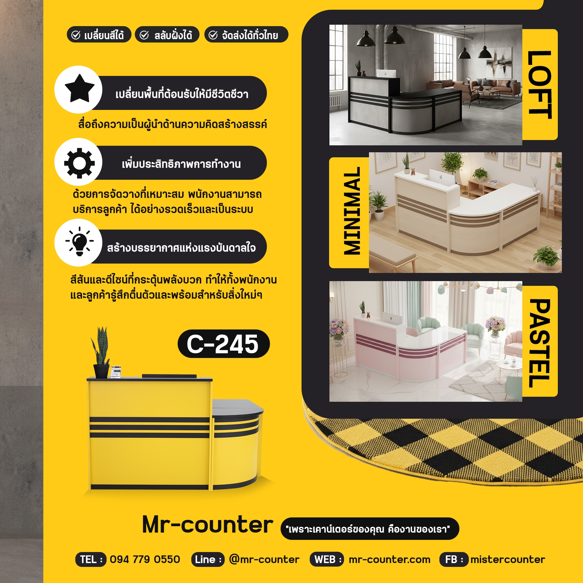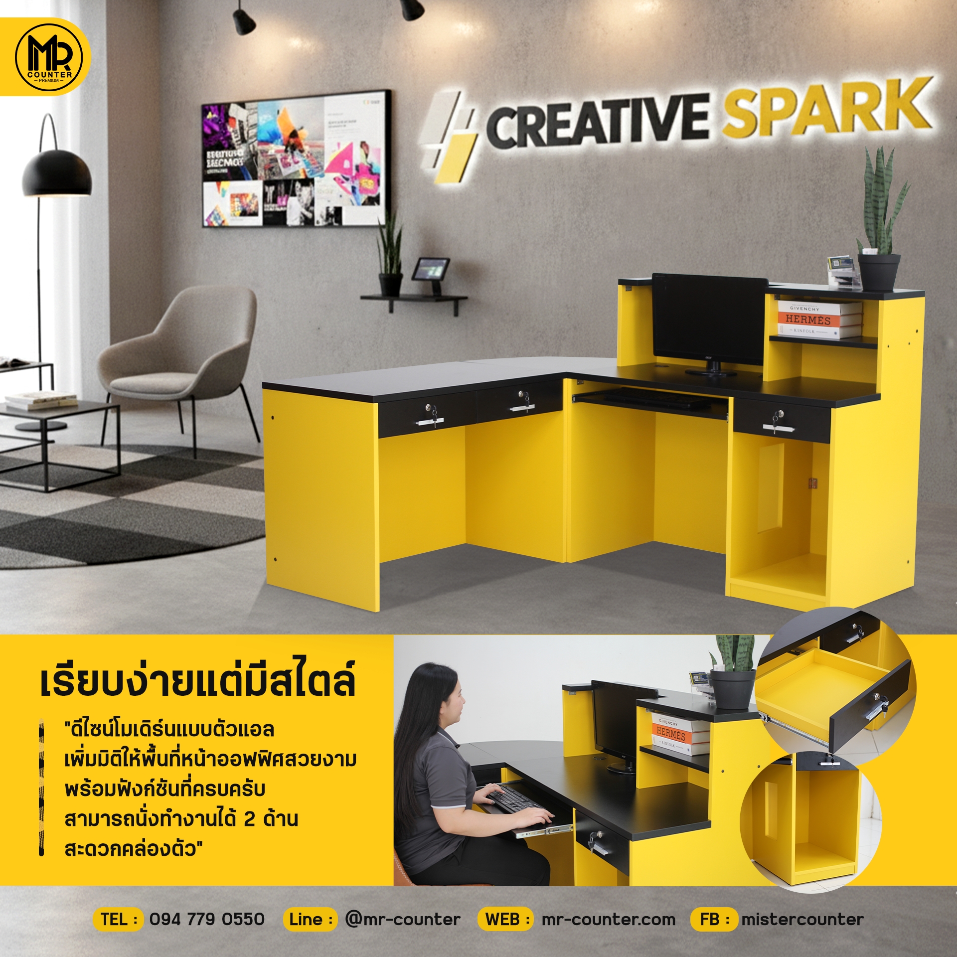 เคาน์เตอร์ตัวแอล ที่เลือกสั่งสีได้ตามที่ต้องการ ตอบสนอง ทุกธุรกิจ ให้เคาน์เตอร์ บอกความเป็นตัวตนของกิจการคุณ ฟังก์ชั่นการใช้งานก็จัดเต็มความสะดวก